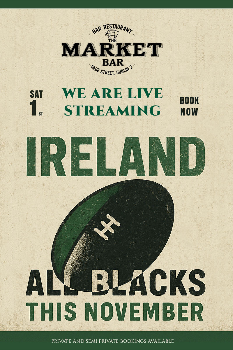 Live rugby is back on the big screen at The Market Bar! We have streamed the biggest games of the year so far, including the Autumn Internationals, and the highly anticipated Ireland v All Blacks clash in Chicago this November.